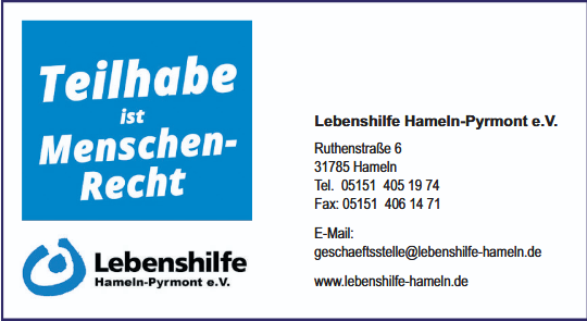 Überhaupt gehören unterschiedliche Wohnangebote ganz sicher zu den größten Errungenschaften in der Betreuung behinderter Menschen. Dass dafür professionelle Hilfe notwendig ist, steht außer Zweifel. Mit dem Sozialpädagogischen Zentrum Hameln-Pyrmont gGmbH und der Diakonie Himmelsthür (siehe Anzeigen auf dieser Seite) erhalten Betroffene Unterstützung und Hilfe im Alltag – und werden Angehörige entscheidend entlastet. Fakt ist: Ein selbstbestimmtes Leben in einem „eigenen“ Zuhause hilft Menschen mit Behinderung, sich wohler zu fühlen, sich entfalten zu können. Natürlich ist dies auch mit Hürden verbunden, aber eben diese Hürden müssen und können mithilfe professioneller Dienste und viel Empathie genommen werden.