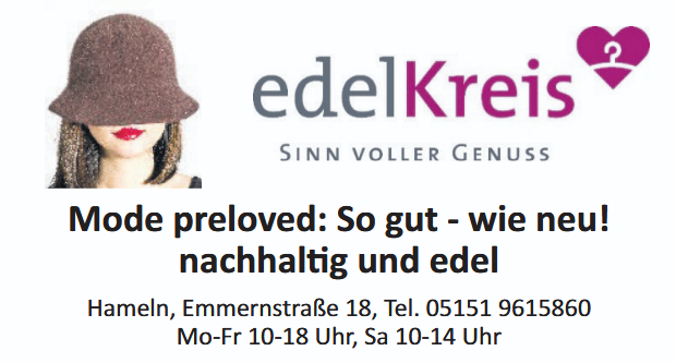 An der Kreuzung zur Baustraße lädt anschließend das Bekleidungsgeschäft edelKreis zum Stöbern ein. Es bietet hochwertige Secondhand-Mode für modebewusste Kundinnen und Kunden, die Wert auf Qualität und Individualität legen. Mit sorgfältig ausgewählten Einzelstücken und einer entspannten Einkaufsatmosphäre steht edelKreis für nachhaltigen Modekonsum und persönliche Beratung. Träger des Stores ist die edelKreis Hameln-Pyrmont gGmbH, die dem evangelisch-lutherischen Kirchenkreis Hameln-Pyrmont angehört. Aus den Erlösen des Verkaufs werden lokale diakonische und kirchliche Projekte unterstützt.