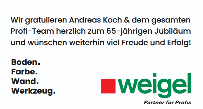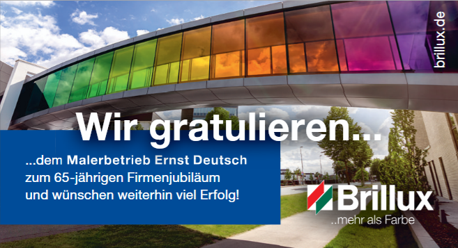 Der 65. Geburtstag des Malerbetriebs Ernst Deutsch ist Anlass zum Dank: an die Mitarbeiterinnen und Mitarbeiter für ihren täglichen Einsatz, an die Auszubildenden für frische Perspektiven und an die Kundschaft für langjähriges Vertrauen. Vor allem aber ist es ein Versprechen für die Zukunft. Ernst Deutsch bleibt ein Betrieb, der offen ist für Veränderungen, der junge Menschen ausbildet und Verantwortung übernimmt – für gutes Handwerk, für sein Team und für die Region. Zum Jubiläum plant der Betrieb ein großes Sommerfest für alle Mitarbeiterinnen und Mitarbeiter. „Unser Malerbetrieb ist ein unschlagbares Team, weil alle Kollegen mitdenken, anpacken, kommunizieren, selbstständig arbeiten und Spaß an ihrem Beruf haben. Ich bin stolz mit so tollen Menschen zusammenarbeiten zu können“, fasst Andreas Koch das Miteinander im Unternehmen zusammen.