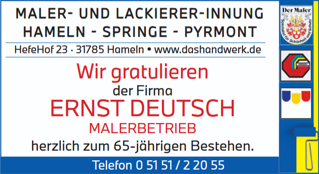 65 Jahre sind im Handwerk keine Selbstverständlichkeit. Beim Malerbetrieb Ernst Deutsch in Hameln ist dieses Jubiläum kein Blick zurück im verstaubten Bilderrahmen, sondern ein klares Statement für gutes Handwerk, für die Menschen im Unternehmen und für die Zukunft.