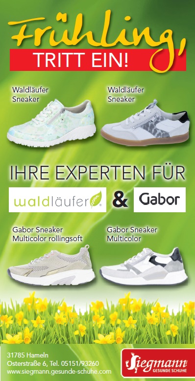 Waldläufer und Gabor heißen die Marken, denen das Team von Siegmann Gesunde Schuhe mit neuen Kollektionen gerade viel Beachtung schenkt. Bei diesem Fachgeschäft handelt es sich um eine auf die Gesundheit bezogene Top-Adresse, wo Männer, Frauen und Kinder vor allem auch Komfortschuhe von Topmarken finden, die neuen Chic an die Füße bringen und besten Komfort mit topmodischen Styles vereinen, sogar einlagengerecht. Nebst umfassender Beratung wahrlich eine Supersache, in einem anerkannten Orthopädiefachbetrieb, der gleichzeitig auch noch Sanitätshaus ist, sein(e) Traumpaar(e) zu finden, die chic, sportlich und elegant gewissermaßen auf Fitness getrimmt sind.
