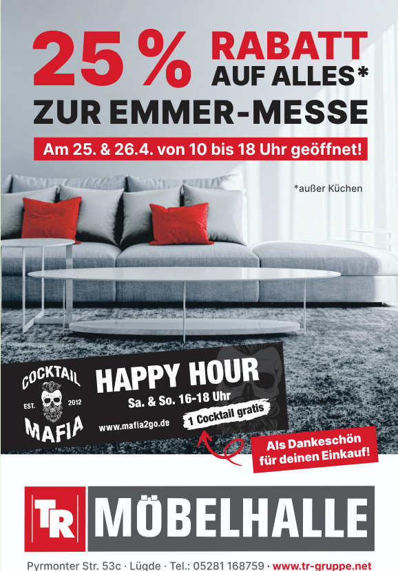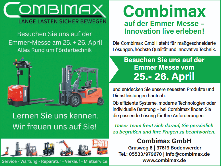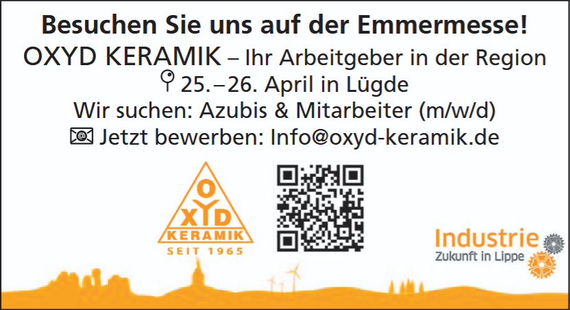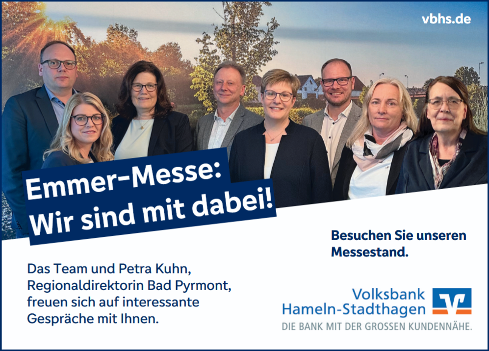 Ende April dürfen sich die Menschen im Lügder-Bad Pyrmonter Emmertal wieder auf ein ganz besonderes Event freuen, wenn die Emmer-Messe am Samstag, 25. und Sonntag, 26. April ihre Tore öffnet. Credo der siebten Auflage dieser Leistungsschau: „Starke Wirtschaft, aktuelle Trends und attraktive Arbeitgeber“. Der Talkessel ist ein attraktiver und wachsender Wirtschaftsraum in der Region Ostwestfalen-Lippe/Weserbergland. Mit der Emmer-Messe wurde ein Format geschaffen, bei dem sich die Unternehmen gemeinsam präsentieren.